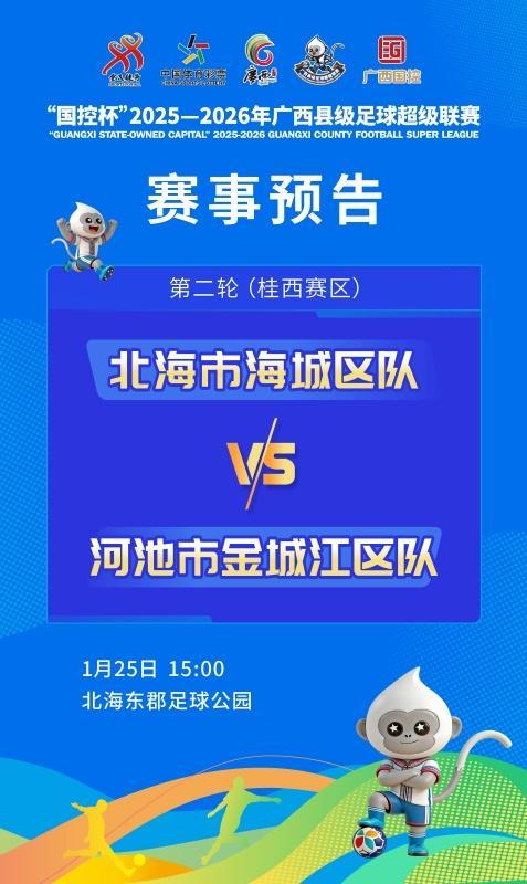 人民网南宁1月21日电 (记者何宁)1月24日至25日,“国控杯”2025—2026赛季广西县级足球超级联赛第二轮将燃情开赛。
