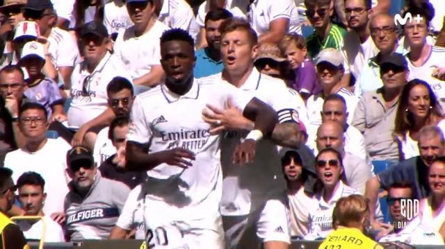 9月11日,西甲第5轮,皇马先输后赢,主场4比1逆转大胜马略卡。第72分钟,接同胞罗德里戈妙传,维尼修斯打进帮助主队领先的一球。不过,比赛中,维尼修斯所做的远不止那一粒进球。马略卡球员多次挑衅他,想激怒他。而他也不甘示弱,每每做出回击。比赛末段,他还跟马略卡主教练、墨西哥人哈维尔·阿吉雷爆发了冲突。